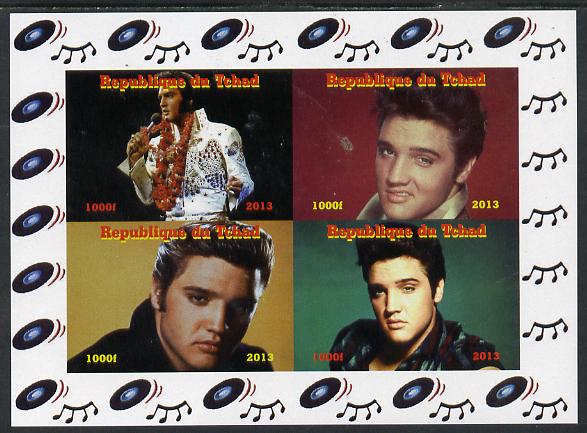 Chad 2013 Elvis Presley #2 imperf sheetlet containing 4 vals unmounted mint. Note this item is privately produced and is offered purely on its thematic appeal.