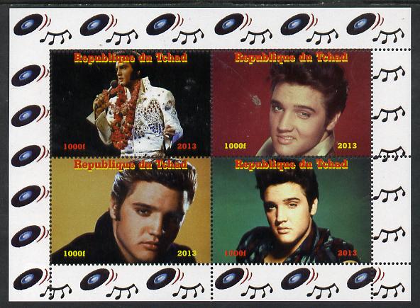 Chad 2013 Elvis Presley #2 perf sheetlet containing 4 vals unmounted mint. Note this item is privately produced and is offered purely on its thematic appeal.