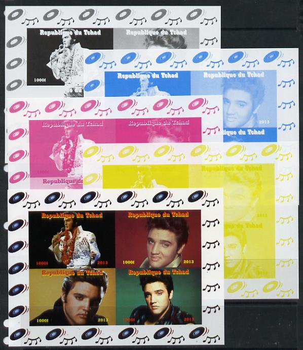 Chad 2013 Elvis Presley #2 sheetlet containing 4 vals - the set of 5 imperf progressive colour proofs comprising the 4 basic colours plus all 4-colour composite unmounted mint.