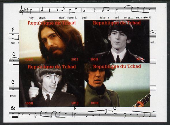 Chad 2013 The Beatles - George Harrison imperf sheetlet containing 4 vals unmounted mint. Note this item is privately produced and is offered purely on its thematic appeal.