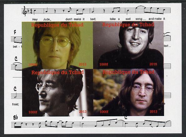 Chad 2013 The Beatles - John Lennon imperf sheetlet containing 4 vals unmounted mint. Note this item is privately produced and is offered purely on its thematic appeal.