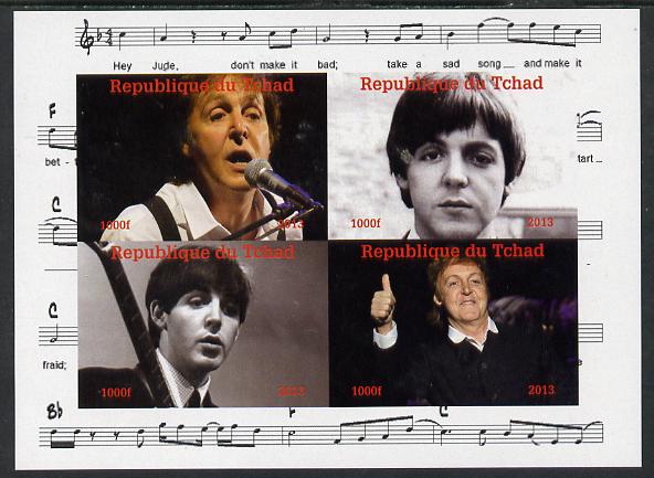 Chad 2013 The Beatles - Paul McCartney imperf sheetlet containing 4 vals unmounted mint. Note this item is privately produced and is offered purely on its thematic appeal.
