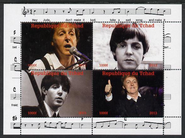 Chad 2013 The Beatles - Paul McCartney perf sheetlet containing 4 vals unmounted mint. Note this item is privately produced and is offered purely on its thematic appeal.