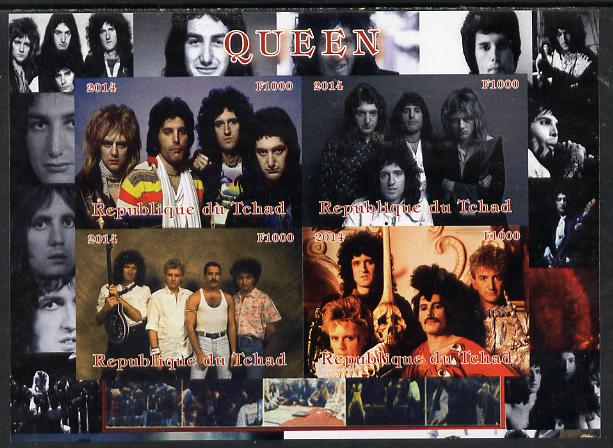Chad 2014 Queen (pop group) imperf sheetlet containing 4 values unmounted mint. Note this item is privately produced and is offered purely on its thematic appeal. .