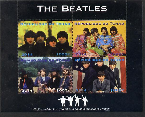 Chad 2014 The Beatles #1 perf sheetlet containing 4 values unmounted mint. Note this item is privately produced and is offered purely on its thematic appeal.