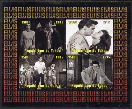 Chad 2015 Elvis Presley #3 imperf sheetlet containing 4 values unmounted mint. Note this item is privately produced and is offered purely on its thematic appeal. .