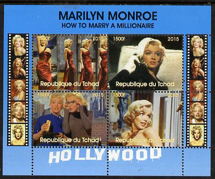 Chad 2015 Marilyn Monroe - How to Marry a Millionaire perf sheetlet containing 4 values unmounted mint. Note this item is privately produced and is offered purely on its thematic appeal. .