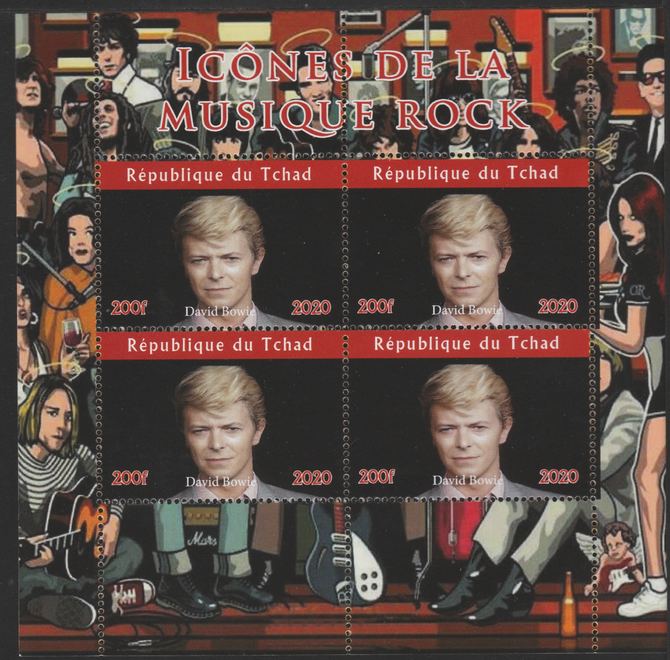 Chad 2020 Rock Music Icons of the Twentieth Century - David Bowie perf sheetlet containing 4 values unmounted mint.