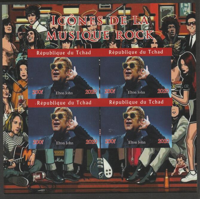 Chad 2020 Rock Music Icons of the Twentieth Century - Elton John imperf sheetlet containing 4 values unmounted mint.