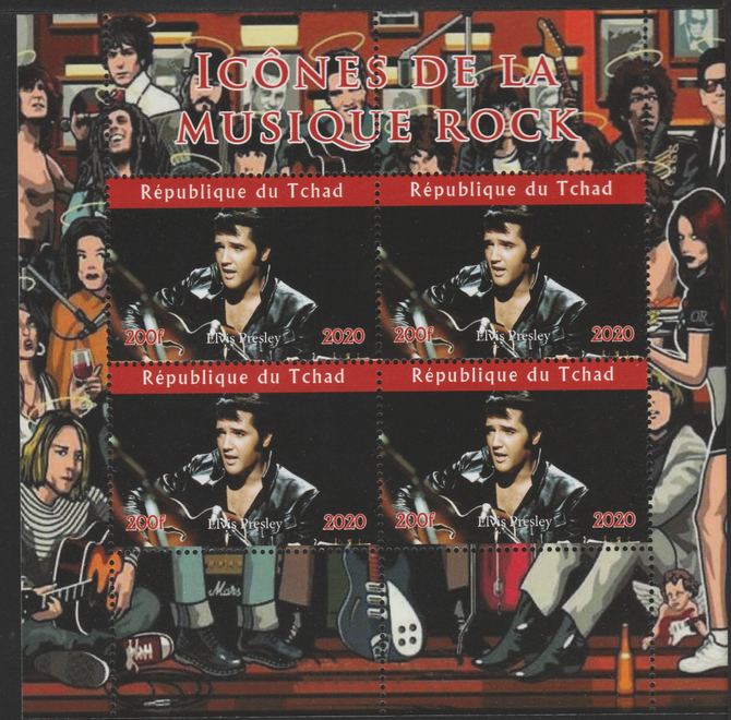 Chad 2020 Rock Music Icons of the Twentieth Century - Elvis Presley perf sheetlet containing 4 values unmounted mint.
