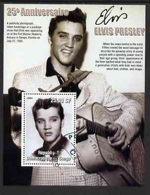 Congo 2002 25th Death Anniversary of Elvis Presley perf souvenir sheet #1 (1955 B&W portrait of Elvis in Tampa) cto used