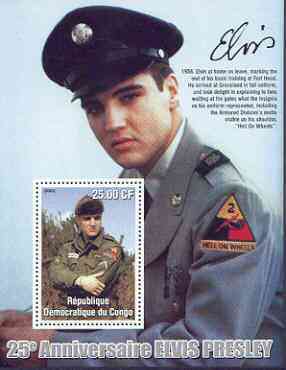 Congo 2002 25th Death Anniversary of Elvis Presley perf souvenir sheet #6 (1958 colour pic of Elvis in GI uniform) unmounted mint