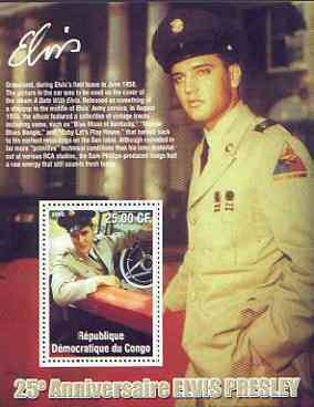 Congo 2002 25th Death Anniversary of Elvis Presley perf souvenir sheet #7 (1958 colour pic of Elvis in GI uniform in car) unmounted mint