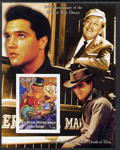 Congo 2002 Birth Centenary of Walt Disney & 25th Anniversary of Death of Elvis #4 imperf m/sheet unmounted mint. Note this item is privately produced and is offered purely on its thematic appeal