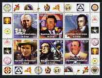 Congo 2003 Famous Persons of NY Masonic Lodge #2 perf sheetlet containing 6 values unmounted mint (Roy Rogers, Paul Whiteman)