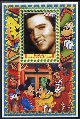 Congo 2005 Elvis Presley #04 perf s/sheet with Disney characters in background unmounted mint