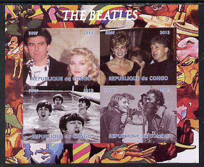 Congo 2013 The Beatles #1 imperf sheetlet containing 4 vals unmounted mint. Note this item is privately produced and is offered purely on its thematic appeal