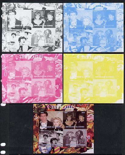 Congo 2013 The Beatles #1 sheetlet containing 4 vals - the set of 5 imperf progressive colour proofs comprising the 4 basic colours plus all 4-colour composite unmounted mint