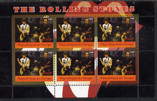 Congo 2014 The Rolling Stones #3 perf sheetlet containing 6 values unmounted mint. Note this item is privately produced and is offered purely on its thematic appeal