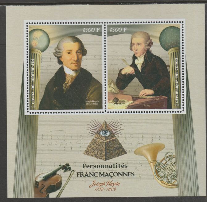Congo 2019 Freemasons - Joseph Haydn perf sheet containing two values unmounted mint