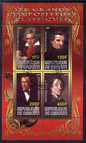 Djibouti 2009 Classic Composers #3 perf sheetlet containing 4 values fine cto used
