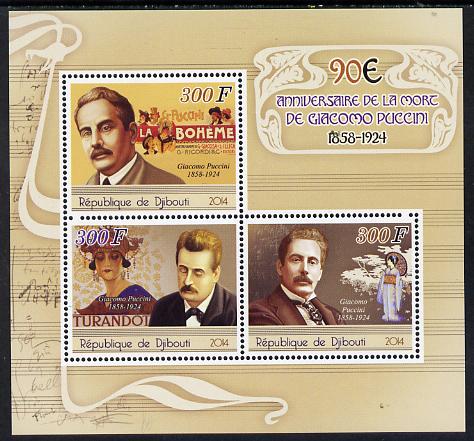 Djibouti 2014 90th Death Anniversary of Giacomo Puccini perf sheetlet containing 3 values unmounted mint