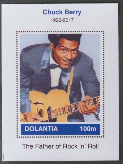 Dolantia (Fantasy) Chuck Berry imperf deluxe sheetlet on glossy card (75 x 103 mm) unmounted mint