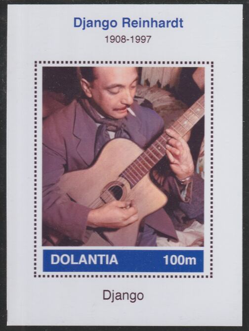 Dolantia (Fantasy) Django Reinhardt imperf deluxe sheetlet on glossy card (75 x 103 mm) unmounted mint