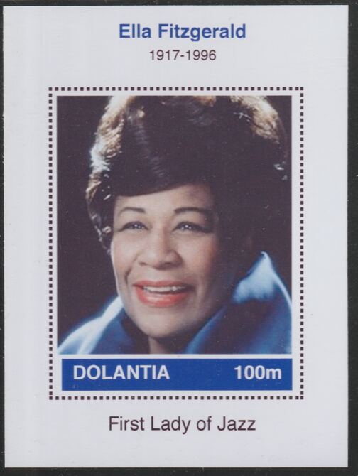 Dolantia (Fantasy) Ella Fitzgerald imperf deluxe sheetlet on glossy card (75 x 103 mm) unmounted mint