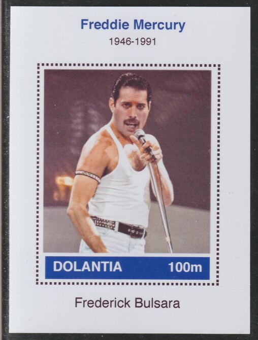 Dolantia (Fantasy) Freddie Mercury imperf deluxe sheetlet on glossy card (75 x 103 mm) unmounted mint