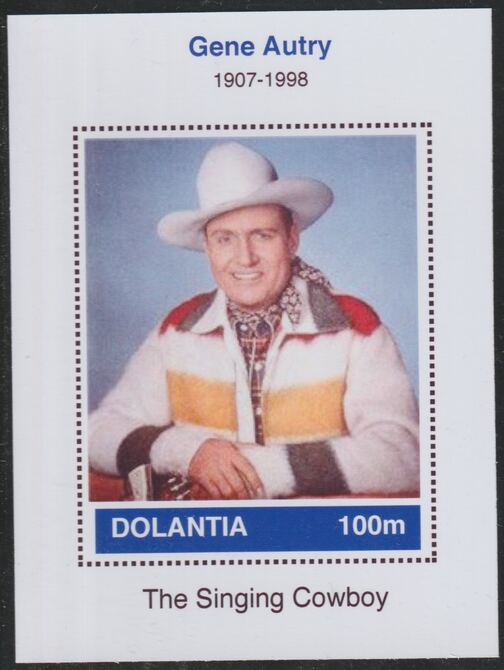 Dolantia (Fantasy) Gene Autry imperf deluxe sheetlet on glossy card (75 x 103 mm) unmounted mint