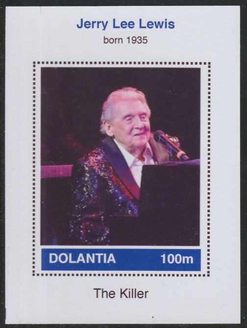 Dolantia (Fantasy) Jerry Lee Lewis imperf deluxe sheetlet on glossy card (75 x 103 mm) unmounted mint