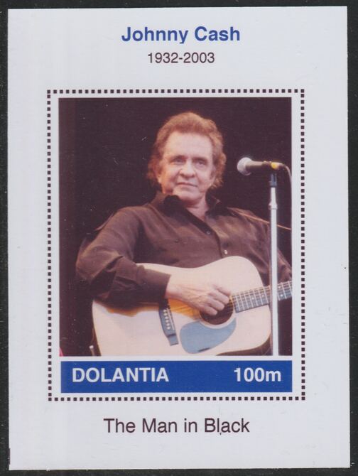 Dolantia (Fantasy) Johnny Cash imperf deluxe sheetlet on glossy card (75 x 103 mm) unmounted mint