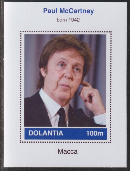 Dolantia (Fantasy) Paul McCartney imperf deluxe sheetlet on glossy card (75 x 103 mm) unmounted mint