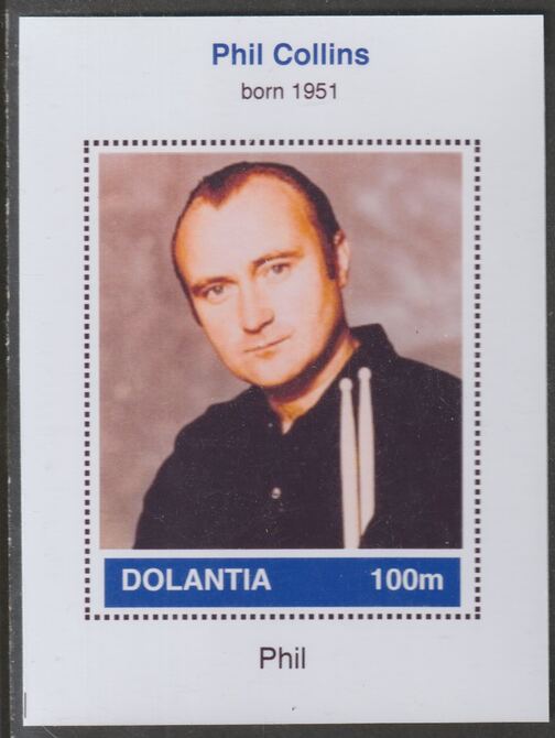 Dolantia (Fantasy) Phil Collins imperf deluxe sheetlet on glossy card (75 x 103 mm) unmounted mint