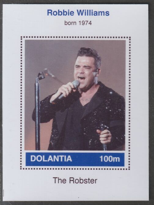 Dolantia (Fantasy) Robbie Williams imperf deluxe sheetlet on glossy card (75 x 103 mm) unmounted mint