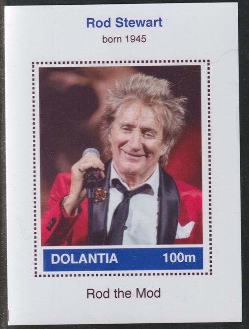 Dolantia (Fantasy) Rod Stewart imperf deluxe sheetlet on glossy card (75 x 103 mm) unmounted mint
