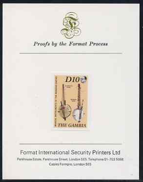 Gambia 1987 Musical Instruments 10d (Koras) imperf proof mounted on Format International proof card as SG 689