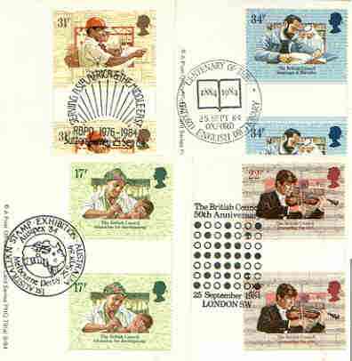 Great Britain 1984 British Council 50th Anniversary set of 4 PHQ cards with appropriate gutter pairs each very fine used with first day cancels