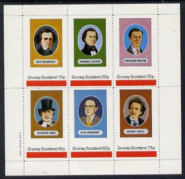 Grunay 1982 Composers perf set of 6 values unmounted mint (Berlioz, Chopin, Verdi, Stravinski, Grieg & Britten)