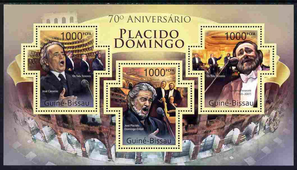 Guinea - Bissau 2011 70th Birth Anniversary of Placido Domingo perf sheetlet containing 3 Cross-shaped values unmounted mint