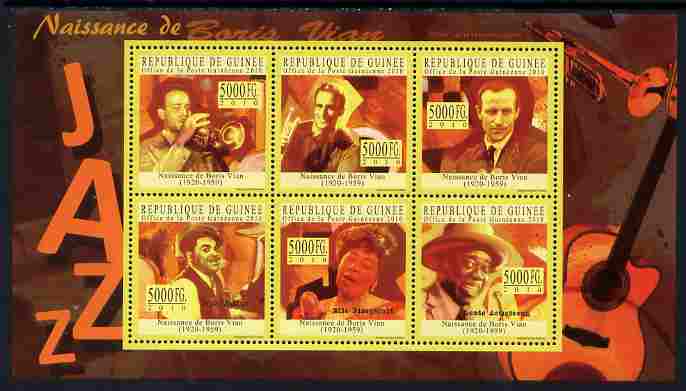 Guinea - Conakry 2010 Birth Anniversary of Boris Vian (jazz) perf sheetlet containing 6 values unmounted mint, Michel 7711-16