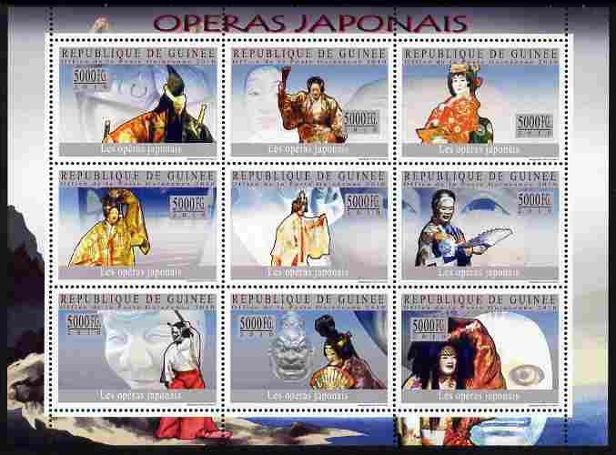 Guinea - Conakry 2010 Japanese Operas perf sheetlet containing 9 values unmounted mint