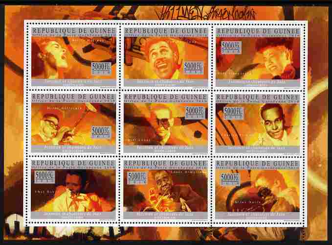 Guinea - Conakry 2010 Jazz Personalities perf sheetlet containing 9 values unmounted mint