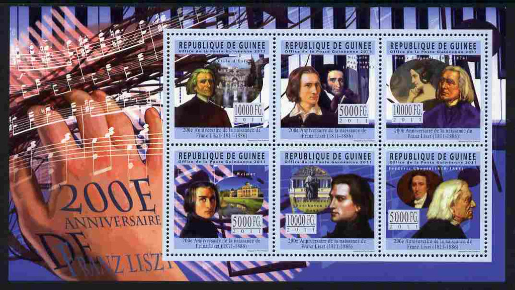 Guinea - Conakry 2011 200th Birth Anniversary of Franz Liszt perf sheetlet containing 6 values unmounted mint