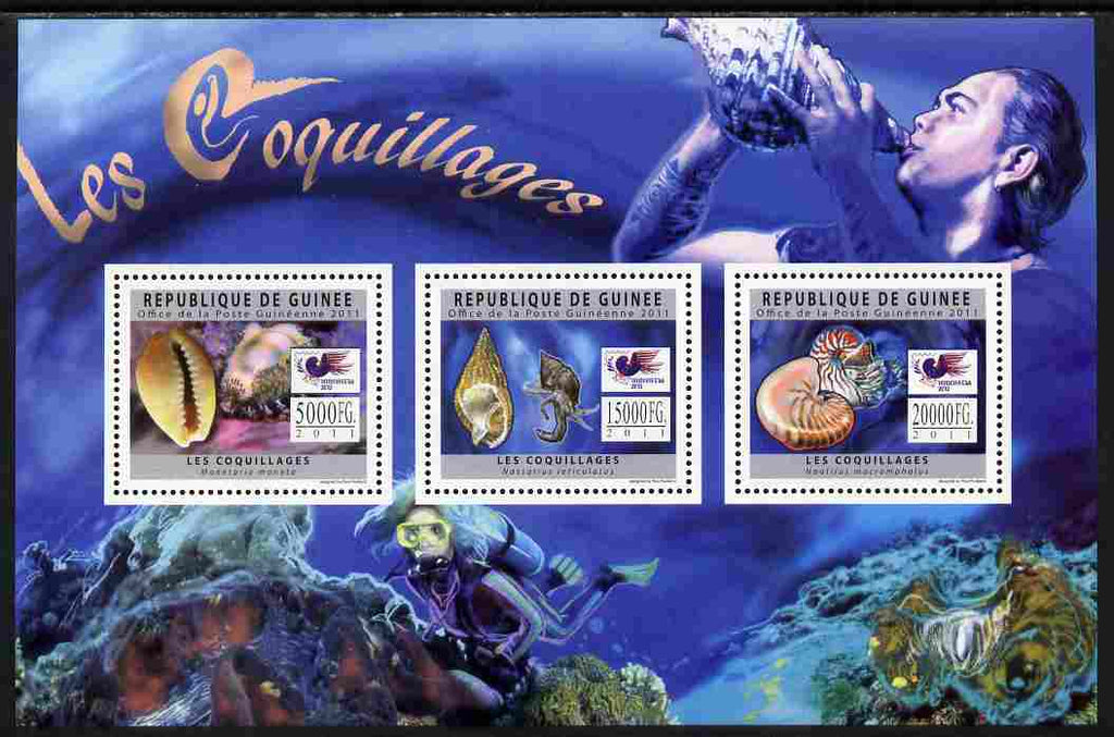Guinea - Conakry 2011 Shells perf sheetlet containing 3 values unmounted mint