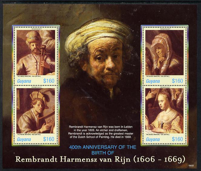 Guyana 2006 Rembrandt 400th Birth Anniversary perf sheetlet containing set of 4 values unmounted mint SG 6571-74