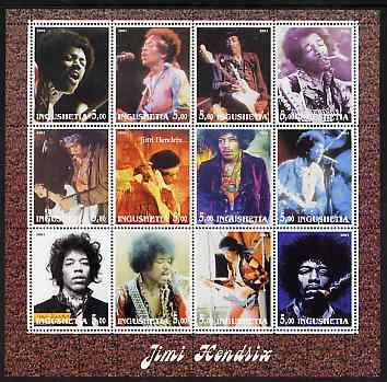 Ingushetia Republic 2001 Jimi Hendrix perf sheetlet containing 12 values unmounted mint