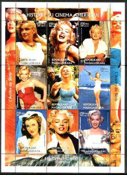 Madagascar 1999 Marilyn Monroe perf sheetlet containing complete set of 9 values unmounted mint