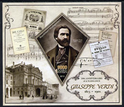 Madagascar 2013 200th Birth Anniversary of Giuseppe Verdi perf deluxe sheet containing one diamond shaped value unmounted mint